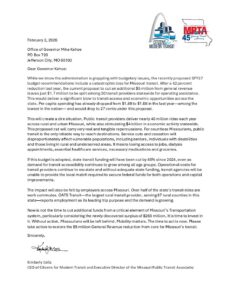 • Letter to Gov. Kehoe on Proposed Transit Cuts